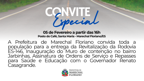Read morePrefeitura de Marechal Floriano convida toda a população para a entrega da Obra de Revitalização da Rodovia ES-146 (Trecho BR262