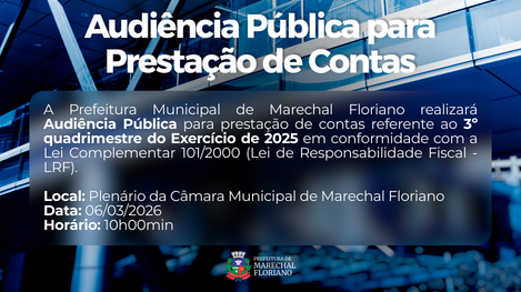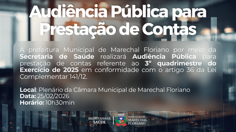 Read moreA Prefeitura Municipal de Marechal Floriano realiza nesta sexta-feira, 6 de março de 2026, uma Audiência Pública para apresentar o