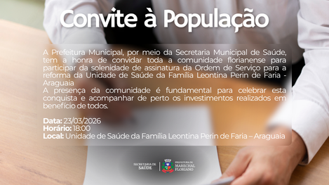 Read moreA Prefeitura Municipal, por meio da Secretaria Municipal de Saúde, convida todos para a Assinatura de Ordem de Serviço para