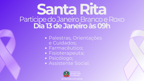 A Unidade de Saúde de Santa Rita convida toda a população para participar do Janeiro Branco e Roxo, um momento especial de conscientização e cuidado com a Saúde Mental e a Hanseníase.